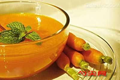 制法:(1)將胡蘿卜洗凈后切成丁,放入鍋內加適量清水煮,約20分鐘可煮爛?!。?)用清潔的紗布過濾去渣,濾下的湯中加入白糖調勻即可飲用?!√攸c:味略甜,富含胡蘿卜素。適宜于3-5個月嬰兒飲用。