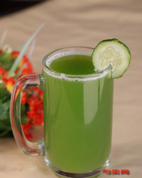 醫學家排列的黃瓜汁醫用價值表上,利尿功效名列前茅。黃瓜汁在強健心臟和血管方面也占有重要位置,能調節血壓,預防心肌過度緊張和動脈粥樣硬化。黃瓜汁還可使神經系統鎮靜和強健,能增強記憶力。黃瓜汁對牙齦損壞及對牙周病的防治也有一定的功效。黃瓜汁所含的許多元素都是頭發和指甲所需要的,能預防頭發脫落和指甲劈裂。黃瓜汁含脂肪和糖較少,是比較理想的減肥飲料。