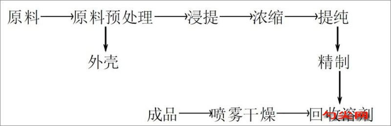 生產梔子黃的方法有乙醇溶液提取法、水提取法和乙醇、乙醚浸提法等。僅介紹乙醇溶液提取法如下。