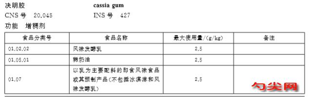 以決明(Cassia obtusifolia或Cassia tora)植物的種子胚乳為原料,用化學萃取的方法加工而成的一種膠體,主要含半乳甘露聚糖,即包含甘露糖線性主鏈和半乳糖側鏈的聚合物。
