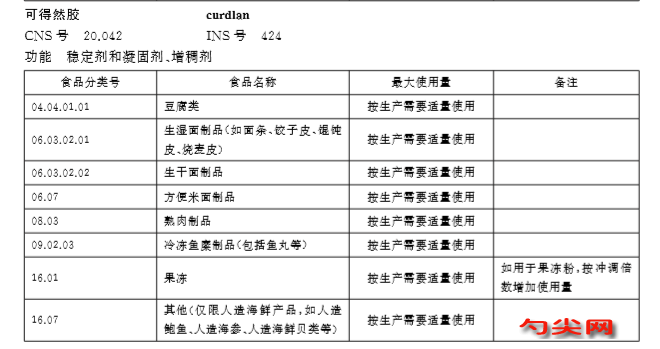 可得然膠作為凝膠劑、結構改性劑、增稠劑、穩定劑等用于果凍、面條、漢堡、火腿、可食纖維膜、油炸食品、冷凍食品、低卡食品(減肥食品)等的制作中。可得然膠作為一種食品添加劑,它可以改善產品的持水性、粘彈性、穩定性,并有增稠作用。可得然膠既可以粉末形式加入也可以懸浮液形式添加,濃度在0.4%-6.0%之間任意選擇。