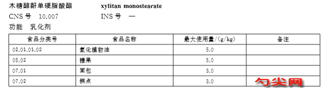 核心提示:木糖醇酐單硬脂酸酯木糖醇酐單硬脂酸酯是一種化學品,化學式是C23H44O5。中文名木糖醇酐單硬脂酸酯英文名Glyceryl Monostearate(