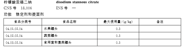 檸檬酸亞錫二鈉是一種化學物質(zhì),分子量370.79,在罐頭中能逐漸消耗殘余氧氣,起到抗氧防腐作用,保持食品的色質(zhì)與風味。