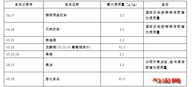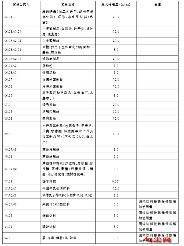 生干面制品、生濕面制品最大添加量1.0%,植脂末最大添加量5.0%,稀奶油、原味發酵乳可按生產需要適量使用。