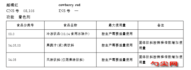 越橘紅可用作食品著色劑。中國規定可用于果汁(味)類飲料、冰激淋,按生產需要適量使用,一般用量為2.0一4.0g/kg(膏狀物)。