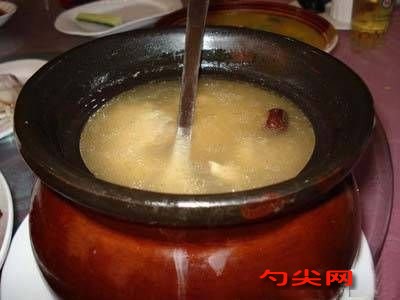 武漢三鎮的小桃園煨湯與老大興鮰魚、四季美湯包、老通城豆皮,并稱為武漢四大名吃。武漢人愛喝湯,因此有"江漢川澤魚蝦美,瓦罐風味蓋百家"之說。武漢人做湯,花樣繁多,魚類有魚圓湯、鯽魚湯、甲魚湯、鱘龍魚湯、生魚片湯、蟲草八卦湯等,肉類有陰米土雞湯、綠豆老鴨湯、人參鴿子湯等,葷素搭配的有排骨蓮藕湯、云豆肚片湯、冬瓜石蛙湯、牛肉蘿卜湯等,五花八門,都是武漢人餐桌上的常見靚湯。還有一些酒樓飯店推出的特色湯,聽名字就覺得美,如峽口明珠湯。