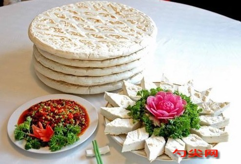 乾州鍋盔的制作材料:乾州鍋盔以當地小麥面粉為主要原料,并配以調料、芝麻、食油。品種有油鍋盔、調料鍋盔和普通鍋盔三種。其制作工藝主要分為和面、制胚、烘烤三道工序。"乾州鍋盔"作為陜西的一種名特食品,已載入《中國土特產大全》一書。
