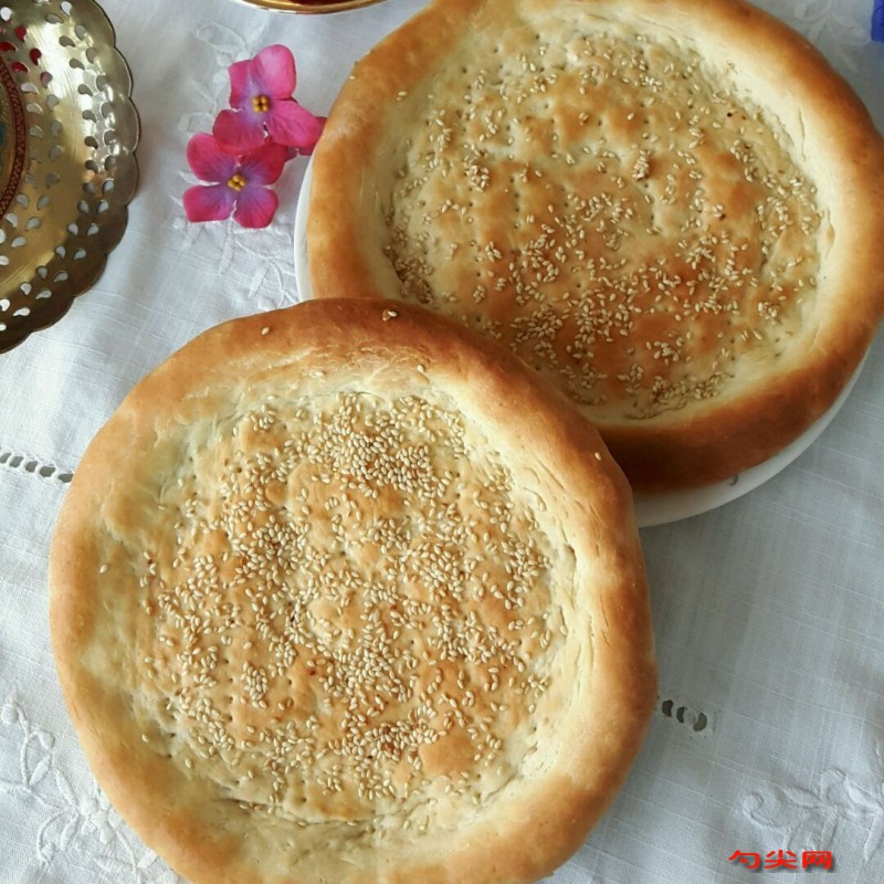各種形狀的烤馕烤馕由于含水少,久儲不壞,便于攜帶,加之香酥可口,富有營養,也為其它民族所喜愛。烤馕的一般做法跟漢族烤燒餅相似。以麥面或玉米面為主料,用芝麻、皮牙子、雞蛋、清油、酥油、牛奶、鹽、糖等充佐料,在面粉中加少許鹽水和酵面,和勻,揉透,稍發。放在馕坑里烤制而成??锯纹ど裹S,香酥可口。加之烤馕制作精細,用料講究,吃起來香酥可口,富有營養,各族人民喜愛烤馕就不足為怪了。"喀克齊"烤馕和"比特爾"烤馕就是用死面做的,面里要和上羊油或清油,搟薄后烤成。"喀特瑪"馕也是用死面和油,不過加工更加精細,用一層面一層油擰在一起,搟薄后烤成。這些馕都具有香、脆酥和久放不變質等特點,也叫油馕,逢年過節或是遇到喜事維吾爾族人常做這種馕來招待客人。一般的馕表面上要放些洋蔥和芝麻,不僅好看,也很好吃。"西克曼"烤馕,就是把冰糖化咸水涂在馕的表面,烤成后冰糖在表面結成結晶,在陽光下晶瑩奪目,叫人垂涎欲滴。不過,在眾多馕的品種中,要數"闊西馕"和"闊西格吉達"馕最好吃了。這些都是肉馕,做法是把肥羊肉切碎,放上洋蔥、鹽和一些作料,然后和在發酵的面里或包在里面,放在馕坑里烤。這種馕吃起來滿嘴油香,久久不散。