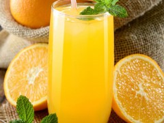 配方:甜橙果漿100克(或新鮮甜橙150克榨汁過濾)、倍田6號0.5克、味達蕾702號2克、純凈水800毫升、小蘇打3克,冰塊適量、薄荷葉少許。