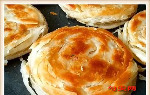再次翻面,我們再烙這種油酥餅的時候,一定要反復方面小火慢烙,大約需要用時4分鐘,直到兩面金黃酥脆層次都已經(jīng)出來后,就可以鏟出鍋了,