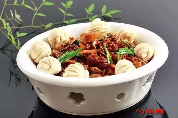 工藝:將土雞用刀砍成小塊;干粉皮用水泡好。鍋內加熟豬油燒熱,爆香辣椒醬和蔥、姜、蒜,然后再下入雞塊炒至變色,加入二湯和A料(干辣椒、八角、桂皮、花椒各10克),雞粉8克,生粉50克,辣椒醬12克,熟豬油30克,二湯1千克,味達蕾901#4克,放入高壓鍋內壓制20分鐘。鍋內倒入壓好的雞塊,然后再放入泡好的粉皮,用大火收汁,最后出鍋,下入蒜苗,裝盤時圍上用不粘鍋煎好的小花卷。