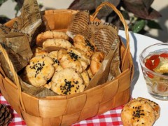 工藝:準備好所用的材料。將核桃仁放烤盤,卡士560A電烤箱上下火180度烘烤8-10分鐘烤香。烤好的核桃冷卻后切碎,備用。將玉米油和糖粉、鹽,面欣酥F攪拌至乳化的狀態。加入打散的蛋液,繼續攪拌均勻。所有粉類混合后過篩加入,拌至無干粉的狀態。最后加入切碎的核桃仁碎,拌勻即可。將面糊分成約20g每個,搓成圓形間隔放入烤盤。面團適當按扁后在表面掃一層蛋黃液,在中間位置放上黑芝麻。卡士560A烤箱,上火180度,下火170度,預熱后烤盤放入中下層烘烤約20分鐘。烘烤至核桃酥表面金黃即可出爐,涼透后密封保存。