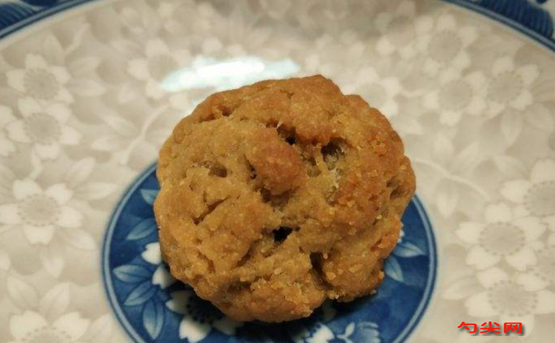 工藝:制皮麻油均分為兩份,一份與白砂糖粉、糕點(diǎn)粉、面欣酥E混合,另一份燒熱后摻到已混合的原輔料中,入鍋炒制,逐步加入開水(約占料質(zhì)量的20%),邊加邊炒,直至炒熟。起鍋冷卻后分成60塊,搟皮包餡。制餡將各種餡料粉碎、混勻,約50g一份捏成團(tuán)。成型將皮和餡等比例包餡,搓圓略按扁即成生壞。烘烤生坯上盤,入爐烘烤,控制溫度280℃,先烤2~3min取出、壓扁,使其自然裂開,然后再烤1~2min即可出爐。外形扁圓,表面自然裂口,色澤深黃,油潤(rùn)光亮,切面細(xì)膩。香甜酥松,料香濃郁。