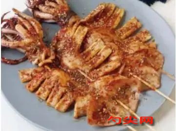 工藝:將清洗干凈的魷魚500克放入500克冰水中,加入用溫水溶解好的海立美B10克,腌制8小時以上。調(diào)制醬汁,將海鮮醬80克、味達蕾902號2克,蒜蓉辣椒醬40克、香辣醬20克、白砂糖50克、花椒粉20克、孜然粉20克、芝麻醬40克和純凈水150-180克(用于化開芝麻醬)混合均勻。把鍋燒熱,撒水試一下溫度,撒上水立馬沸騰即可。將腌制好的魷魚放入鍋中,去除水分,按壓定型。水分去除后,鍋中放油,爆香洋蔥碎,將魷魚放在洋蔥碎上按壓去腥,去腥后取出洋蔥。鍋中再放油,將魷魚放入鍋中煎香,剪個花刀,刷上調(diào)制好的醬汁。翻面,再刷上醬汁,按壓煎制一會,加點水繼續(xù)按壓。煎好后撒上辣椒粉、孜然粉、蔥花即可。