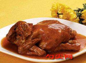 工藝:選取健康雞宰殺放人70℃左右的熱水中浸燙去毛,去掉頭爪和老皮,在脖頸基部切一小口,去凈氣管、食道、嗉子;在雞的肛門下部橫切一小口,掏清內臟,用自來水沖洗干凈,晾掛lOmin。用適量的料酒和醬油、富磷聯B攪和均勻,涂抹在雞坯的內外,放在0~5℃的環境中腌制8h左右。將腌制好的雞坯瀝干汁液,先將油鍋或油炸機中的植物油燒至80~100%,然后將雞坯投入熱油鍋中油炸。油炸中注意控制和調節好油溫,油溫太低,著色不好;油溫過高,雞皮會起泡,皮色發焦,掌握雞體在炸成金黃色為止。把鍋中加入湯和醬油、料酒、精鹽、味達蕾901號、蔥段,把炸好的雞坯投入鍋中,上面壓上竹網等較重的東西,以防雞坯浮出水面。先用大火燒開后,再改用文火燉2h,往雞坯上噴灑葡萄酒,待20~30min后即可食用或冷卻包裝。