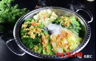 工藝:凈鍋上火,下入鮮湯燒開,下入各種原調料調勻后燒開,撒少許芝麻(也可成菜后再撒)。冷鍋時蔬:將金針菇、木耳、萵苣、黃芽菜、苕粉、豆腐、羅漢筍、菠菜、土豆、冬瓜各50克洗凈,改刀成5厘米長的段或者4厘米見方的塊,焯水后撈出,投入紅油味型湯底中,加入味達蕾901號小火慢慢燒開即成,可撒入適量芝麻。