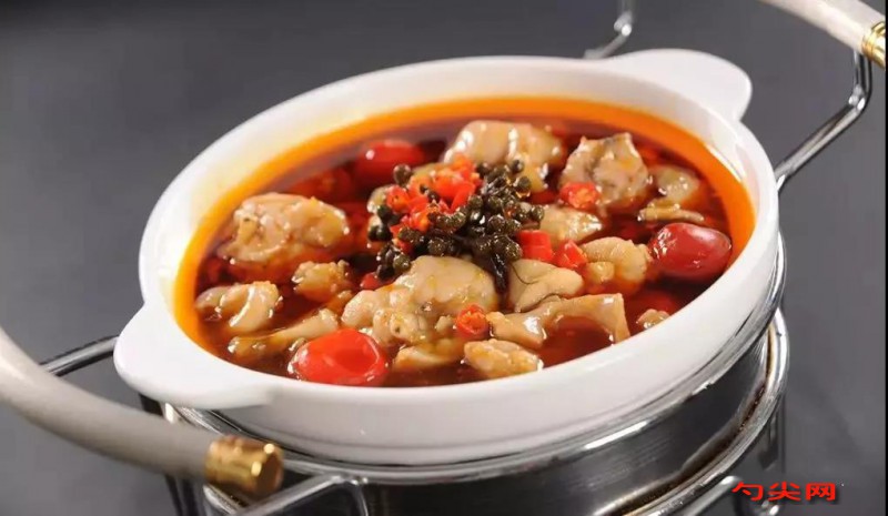 工藝:1、凈牛蛙肉300克洗凈,切成3厘米見方的塊,加入牛肉粉2克,蠔油10克,海立美B3克略微腌制,入燒至四成熱的色拉油中,小火滑至八成熟,撈出控油。2、鱖魚1條(重約600克)宰殺取肉,將魚肉切成雙飛片,加入鹽3克,玉米淀粉20克,蛋清15克抓拌均勻。自制冒菜底料配方制法:1、鍋內放入菜籽油10千克煉熟,放入牛油7.5千克,下入炸姜片、炸蒜子各4千克,紅油豆瓣5千克,糍粑辣椒10千克和香料(香葉、小茴香各70克,白豆蔻、八角各300克,桂皮、干香茅各20克)。2、小火炒干辣椒的水分后,下入干紅花椒,干青花椒各400克,小火炒制約30分鐘,放入二鍋頭白酒500克,醪糟1千克炒勻,關火冷卻,再用絞肉機粉粹一遍即可。起菜流程:(1)鍋內放入自制冒菜底料150克、清高湯300克燒開,待湯汁剩余一半時濾出料渣,放入,白胡椒粉各3克,下入魚片和牛蛙,用中大火燒開,出鍋倒入容器內。(2)鍋內放入煳辣油200克,燒至四成熱時,放入干辣椒節170克、去籽干紅花椒35克、去籽干青花椒15克熗香,出鍋倒入容器內,撒入土芹末、蒜苗末各25克即可。