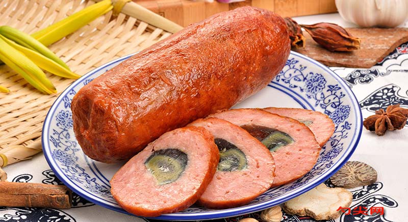 工藝:1,雞精腿肉用最大孔徑絞制,富磷聯(lián)C10g/kg(以肉計(jì)算)加入鹽糖攪拌至有粘性腌制6-8小時。2,加入剩余所有物料以及冰水?dāng)嚢杈鶆颉?,取復(fù)合國家食品標(biāo)準(zhǔn)的松花蛋上屜入爐100度20分鐘蒸煮。4,雞腿皮大或雞胸皮大緩化待用5,松花蛋去皮對半切待用。6,取滅菌干凈的白布約40*40在案板上攤平,雞皮在白布上攤平。攪拌好的雞腿肉取適當(dāng)重量在雞皮上攤平,兩個切好的松花蛋左右各一個放在雞腿肉上,用雞腿肉包好松花蛋至無漏出的地方,將雞皮包裹好雞腿肉,將白布包裹好產(chǎn)品。注意雞皮如果不夠大可以兩塊拼在一起用。7,85度90分鐘蒸煮。8,去掉白布,注意別把雞皮也一起沾下去。9,煙熏至金黃色10,可包裝后殺菌,可散貨銷售。