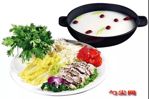 工藝:1.取龍躉魚肉600克切薄片。2.鍋內(nèi)倒入色拉油50克燒熱,放入龍躉魚骨300克煎香后,倒入熱水2千克,大火煮10分鐘,取出過(guò)濾,即成魚湯。3.高山娃娃菜、皇帝菜、金針菇各100克擇洗干凈,裝盤。熱處理:鍋內(nèi)倒入魚湯2千克燒沸,放入花蛤150克、白蘿卜片200克、蟹味菇80克、紅棗20克,用雞粉、鹽、味達(dá)蕾901各4克調(diào)味,小火煮5分鐘后盛入湯鍋內(nèi),湯鍋放于湯精爐上,搭配皇帝菜、金針菇、高山娃娃菜上桌即可。