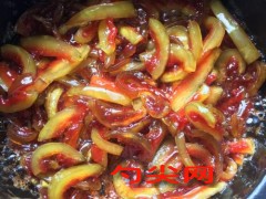 注意事項:選用皮肉厚,干凈的新鮮西瓜皮。將西瓜皮用清水徹底淘洗干凈,撈出后瀝干浮水,用刀除去外表皮和瓜瓤。按4×1.5×1.5厘米的規格切制成瓜條。