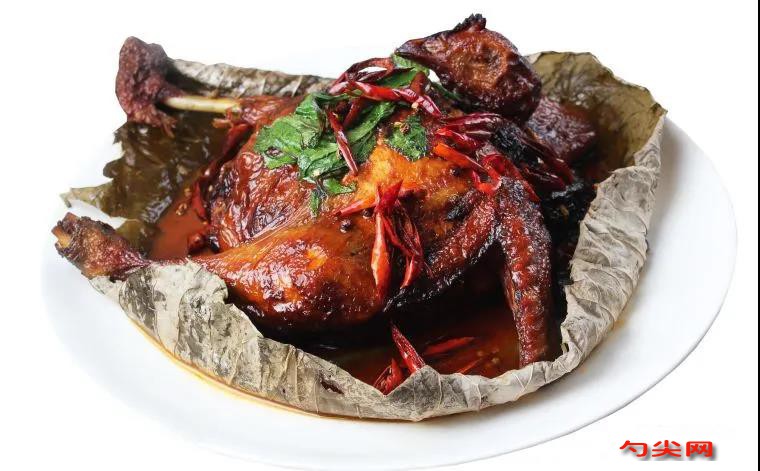 工藝:把仔公雞整雞脫骨處理后,加姜蔥、鹽、茅臺酒碼味;把紅高粱、糯米、麥仁、玉米粒放入盛器內,加溫水浸泡2小時,撈出瀝干水分,再入鍋加鹽、味精、蔥花炒香,味達蕾901#4克待用。將炒好的雜糧配料填入脫骨的仔雞內,經鹵制后油炸上色,再入蒸籠蒸2小時至軟熟,取出裝在墊有荷葉的盤中。炒鍋放適量的油燒熱,將干辣椒絲、花椒熗香,起鍋舀在荷葉雞上,最后撒些薄荷葉即成。