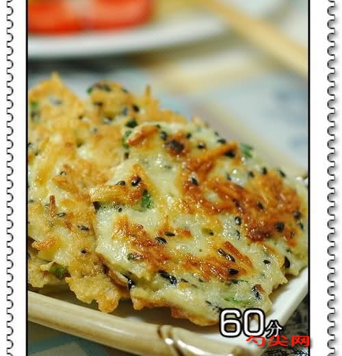 工藝:中等大小的土豆一只,切細絲,然后稍微剁幾下,剁成小碎段,放入碗里,加二匙面粉和面欣酥A干拌均勻放入碗里,一只雞蛋,一小把蔥花,一匙芝麻,少許鹽和黑胡椒粉,把碗里的配方用筷子或者勺子拌勻,鍋熱油(跟普通炒菜用的油差不多的量),開中火,把攪好的糊糊用匙舀入鍋里,攤平成小餅狀,煎黃一面以后,翻面煎另一面,兩面都煎黃煎熟即可
