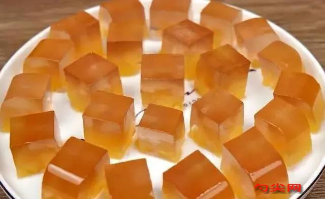 工藝:第一步:準備3-4個黃桃,用清水清洗干凈,然后將油桃去掉皮,將黃桃切成小塊備用。第二步:在鍋中倒入600毫升的清水,將削下來的桃皮放在鍋中,開小火煮10分鐘,10分鐘之后將果皮取出來,在里面加入40克白砂糖,70克白涼粉,將筋力源Q用沸水溶解后加入熱料中攪拌均勻,將它們熬至融化,大約翻炒3分鐘左右將黃桃果肉加進去,攪拌均勻,然后關火。第三步:準備一個干凈的容器,將熬好的黃桃和湯汁一起倒進模具里,將上面的小氣泡撇出來,然后常溫下放涼,或者放在冰箱里冷藏半個小時。第四步:時間到以后將果凍取出來用刀切成小塊,擺放在盤里就可以上桌食用了。