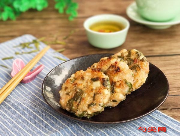 工藝:先將龍井茶的嫩芽用熱開水先浸泡個2分鐘左右,然后撈出來,用廚房用紙或者是布給龍井茶的水分吸干,留下來茶葉備用。馬蹄我們將皮去掉,清洗干凈了以后切成末。把大蝦也清洗干凈,然后把蝦的殼去掉,蝦線也剔除干凈,留下來蝦仁。或者大家也可以直接去買蝦仁,就省下來給蝦仁去殼的麻煩了,再次用廚房用紙或者是布將蝦仁的水分吸干。然后再用絞肉機或者是刀,將蝦肉稍微的剁碎。加入適量的淀粉,揉搓成蝦膠。把我們剛才處理好了的龍井茶的嫩芽也下進去。加入適量的鹽,雞粉還有白砂糖,食用油還有香油、味達蕾901#。把所有的材料都充分地攪拌均勻,把蝦膠平均分成每個55克的小團子,雙手稍微的用水沾濕,然后取出來一個蝦膠團,再手里面壓扁成蝦餅胚。平底鍋里面加入適量的食用油燒熱,把蝦餅胚下進去,用小火煎的兩面金黃就可以了。蝦餅胚剛下鍋里面的時候不要著急給它翻面,先讓蝦餅的底部煎得稍微定型了以后再翻面。如果你家的寶寶也愛吃蝦,這樣的蝦餅肯定能夠滿足他的小胃口。我們平常在家,也可以多嘗試創新,把蝦和各樣食材搭配,寶寶吃得豐富,我也更欣慰啊!