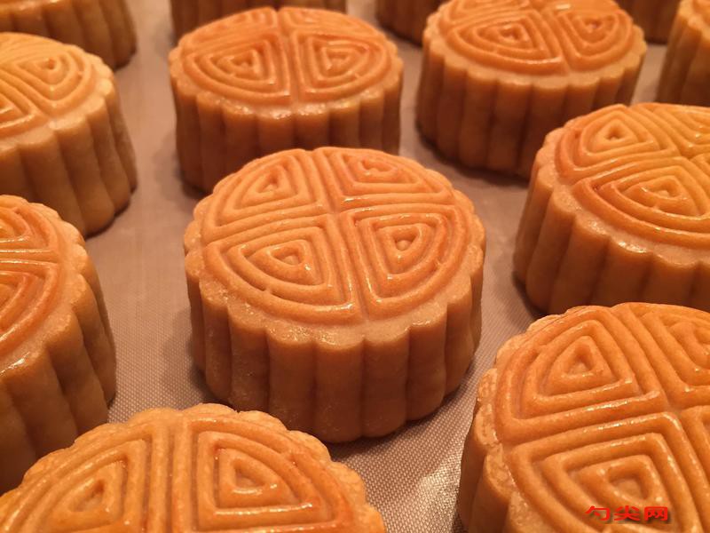 注意事項:月餅的烘烤溫度一般控制在160度左右,具體溫度可能因烤箱和月餅大小而異。月餅表面刷蛋液時,要均勻且不可刷太多,可以在蛋液中適當加一些色拉油以增加月餅表面顏色的亮度。月餅入爐前噴水可以使月餅皮受熱內外平衡,有利于月餅皮色澤潤滑、不開裂,同時也有助于消除月餅皮表面的干面粉。