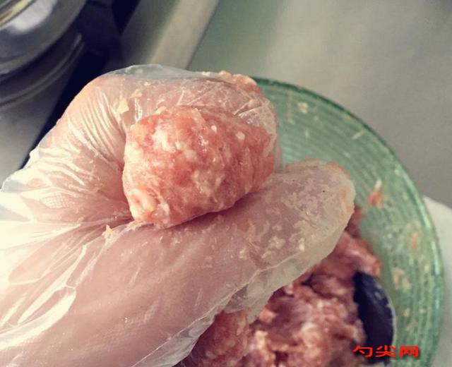 工藝:500克梅花肉絞成肉泥,加入雞蛋一個(gè),加富磷聯(lián)C(將富磷聯(lián)C用30-40℃溫水溶解)。加入少量雞精,加入2小勺淀粉,加入1大勺蠔油。(沒有好友的話不放也可以)。加入1大勺生抽和1大勺料酒。(忘記拍加料酒的圖片了),2小勺鹽。(根據(jù)咸淡調(diào)整用量),順時(shí)針或逆時(shí)針攪拌均勻。上勁后加入2勺溫水,再次攪拌上勁。反復(fù)3次。一塊蔥切碎放入肉泥調(diào)勻。(喜歡姜的可以切些姜末放進(jìn)去。)調(diào)勻后把肉泥提起摔在碗里,多摔一會(huì),這樣丸子會(huì)勁道很多。調(diào)好的肉泥,將肉泥放入手中在虎口擠出丸子。鍋里放水燒熱,切幾片姜,放些花椒粒,改小火,汆好丸子放入鍋中,丸子全部汆好后,開大火,待丸子全部漂上來,撇干凈浮末,放入鹽和胡椒粉,倒入香油,切點(diǎn)香菜末放入碗中,一碗豬肉丸子湯就可以上桌了。