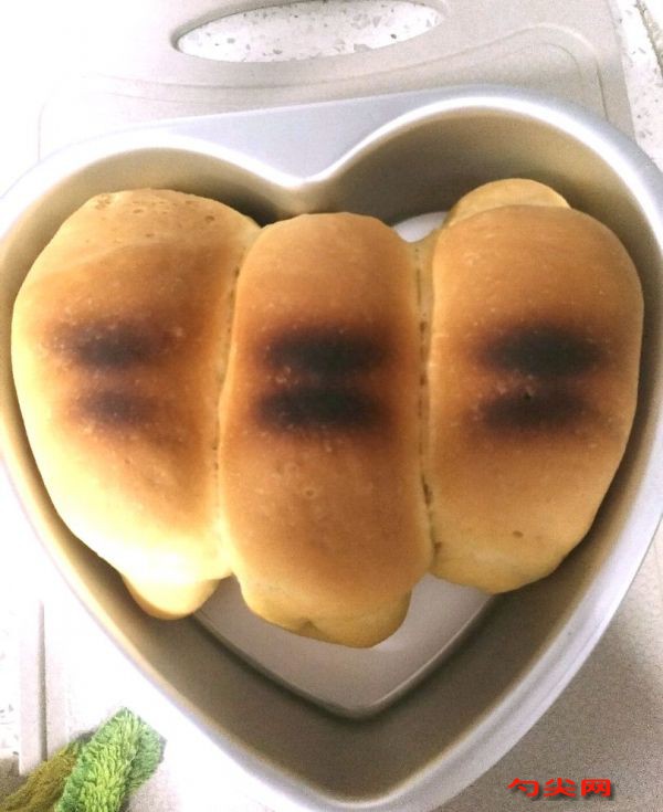 配方:普通面粉280克、佳多美Q1克、酵母粉4克、黃油10克、白砂糖15克。