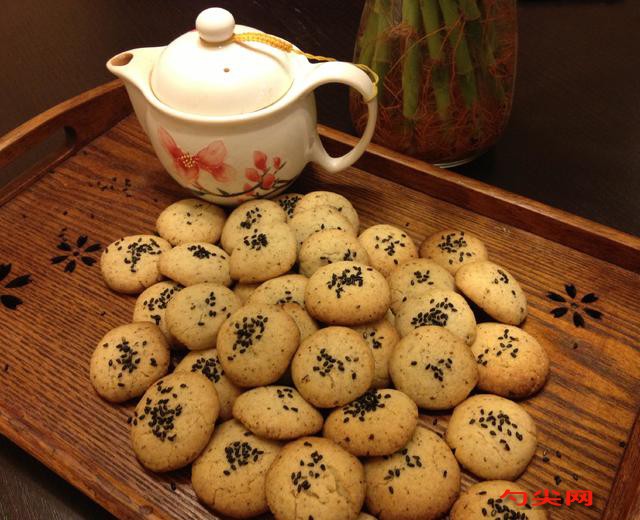 配方:面粉250g,面欣酥F2克,油(葵瓜子油、玉米油……)130g,糖粉120g,花椒粉5g,蘇打粉2g,全蛋液25g,鹽2g,黑芝麻10g,白水少許