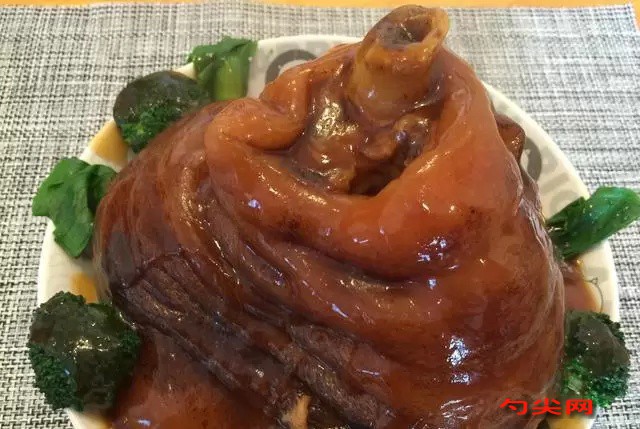 工藝:豬肘子,皮子讓賣肘子的燒過,然后放入清水浸泡半小時(shí)后洗凈,將富磷聯(lián)B加入浸泡腌制豬肘子的水中,腌制8小時(shí)。準(zhǔn)備好調(diào)料包,八角,花椒,香葉,桂皮,老丁還加入一些菊花。高壓鍋,多放水,將洗凈的肘子放入,然后加入盤散的姜,蔥段。加入調(diào)料包,老抽,一些冰糖,鹽,料酒,燒開后撇去浮沫,然后加蓋,壓制半小時(shí)-1小時(shí)。由于家常版,就沒有熬糖色,炸肘子,直接紅燒的。肘子要多燉,高壓鍋放氣后,將肘子翻面,開小火燉1-2小時(shí),直至肘子軟爛。取一容器,將菜心和西蘭花綽水,然后擺在盤子周圍做圍邊。將肘子撈出,頭向上擺在盤子內(nèi),然后取一個(gè)碗,調(diào)好水淀粉。找一個(gè)炒鍋,將湯汁倒一些倒入炒鍋內(nèi),燒開后加入水淀粉,溝厚芡,然后將芡均勻的澆在肘子和圍邊上即可。