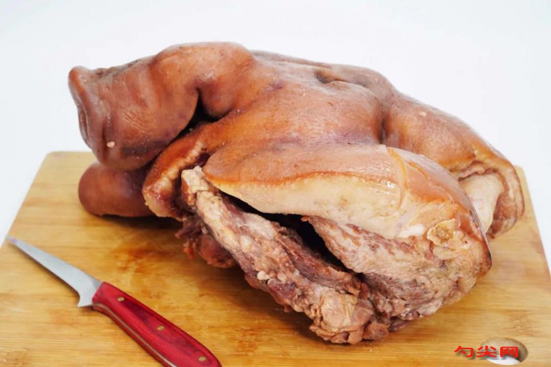 工藝:將豬頭徹底刮凈表面、臉溝、耳根等處的毛污和泥垢,拔凈余毛和毛根。