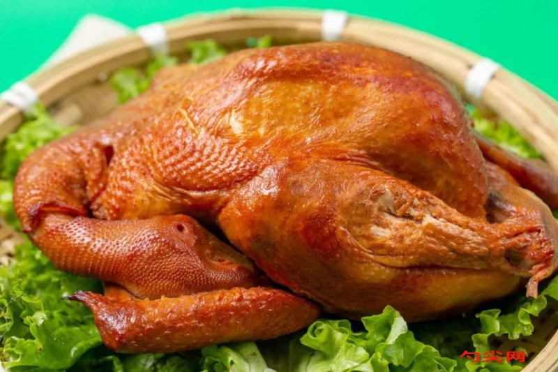 工藝:宰殺洗凈的小公雞用清水沖漂30分鐘去凈血水,撈出瀝干水分備用。把瀝干水分的雞放到,上色蜜汁水里把雞的表皮涂抹均勻。然后放到陰涼通風處晾干。凈鍋上火倒入色拉油,油要寬上火加熱倒150°——160°左右,把晾干的雞輕輕的放入油中小火浸炸至表面金黃即可,撈出控干油備用。鍋中倒入高湯25千克或雞湯25千克,放入一個香料包,富磷聯B32克再加入全部調料品大火燒開后放入炸至金黃的雞,大火燒開后改小火煮7分鐘,然后關火浸泡8小時即可。成品肉質細嫩,香味濃郁。
