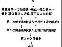 對于長期儲存的腌漬蔬菜,應采取正確的方式及時保管并嚴格控制好儲存的環境條件。如長期儲存的腌菜醅,容器裝滿以后,要灌滿高濃度的鹽水,將其封閉。隔絕表面的空氣防止氧化或風干。儲存環境應當潔凈、通風。在夏季還要注意由于空氣潮濕,表層的食鹽水吸收空氣中的水分,降低了表層食鹽的濃度,此時耐鹽的醭酵母會在表面長出厚厚的酵母醭,降低品質,嚴重時會造成表層的蔬菜腐爛,使腌菜醅帶有異臭味道。夏季管理應當注意隨時觀察腌菜醅表面鹽水的色澤、渾濁度,一旦發現色澤異常或渾濁應立即補加高濃度的食鹽水增加表層食鹽濃度,達到抑制有害微生物生長的目的。④水分對鹽漬蔬菜的影響。每一種微生物都有其所要求的水分活度區間,當產品中水分活度不能達到其所需要的量時,該微生物的生長就受到抑制。因此降低產品中的水分活度是很關鍵的,在設計產品配料時應考慮其含量,以提高產品自身的防腐能力。3)傳統醬菜生產工藝。醬菜的品種很多,風味、口感各異。但是傳統醬菜醬制過程操作方法基本一致,一般醬菜的制做先將菜腌制成咸菜醅,再經切制成型,脫鹽后再進行醬制。①醬菜生產工藝流程②醬菜的制作。預先腌制好經儲存的蔬菜食鹽含量較高,需經脫鹽工藝處理,以降低食鹽的含量。根據蔬菜的品種及醬菜產品的要求,將咸蔬菜切制成不同的形狀(有的品種不需要切制)。用清水浸泡,將菜坯中的食鹽含量降低至12g/100g以下時,經適當的脫水處理,然后進行醬制。傳統的醬菜生產工藝是將處理后的菜坯裝入布袋,再放入甜面醬(或豆醬)中醬制。醬制過程中需要經過3次倒菜。一般經1個月的醬制過程即可得到成品。4)影響傳統醬菜質量因素①菜坯切制時對質量的影響。應保持刀片的鋒利,否則會使切制成菜胚表面粗糙,使成品菜的光澤度較差。同時產生碎末,使感官質量下降并造成浪費。②菜醅脫鹽對質量的影響。咸醅脫鹽非常關鍵,不能過高也不能過低,如果使其脫鹽過低。菜醅中食鹽含量少,醬漬過程中如管理不及時或管理不到位,很容易造成乳酸菌的繁殖,使醬菜口感發酸,降低品質;若食鹽含量過高,會造成醬菜成品過咸,影響口感。夏季天熱時,應注意菜坯的食鹽變化,要及時進行脫水醬制,防止食鹽濃度低,污染雜菌,使菜坯發黏或產生異味,影響菜坯的質量。在脫鹽的過程中除降低了食鹽的濃度外,腌菜中的其他物質,如苦味、辣味和一些不良的風味物質也隨之脫去。其中也包括一些有益的物質的損失。③醬制過程中的倒菜對產品質量的影響。菜坯入醬后應及時倒菜。切制好的蔬菜經脫鹽后醬制時,食鹽含量較低,一般在12%左右。放入醬中與空氣隔絕,一些耐鹽的厭氧微生物,如乳酸菌等很容易繁殖,使菜的pH值下降,降低菜坯的質量。倒菜的時間不能過早或過遲。過早倒菜,菜中的鹵汁不能置換出來,起不到醬漬的作用;過晚,由于菜坯中的食鹽含量較低,很容易引起厭氧微生物的發酵,使醬菜口感發酸。特別是夏季更應注意,掌握好時間。隨著醬制時間的延長,醬中的糖、有機酸、氨基酸等有效物質不斷的滲入到菜坯中去,逐漸達到平衡。菜的口感、風味、色澤等都得到了根本的改變。同時由于有機物質的大量滲入,菜的滲透壓也相應的增加,提高了其抗微生物的能力。④醬漬過程中溫度對產品質量的影響。溫度低,物質分子活動的速度慢;溫度高,物質分子活動的速度快。醬菜的醬制過程中,主要反應是物質分子間的滲透置換作用。當溫度過低時,滲透作用減漫,就會延長醬菜的生產周期。因此在冬季,應注意生產車間的保暖。當溫度高時,雖然滲透作用加快,使成熟期可以縮短。但是,由于適宜的溫度會促進一些微生物繁殖,從而產酸或產生不良氣味。特別是在夏季,這種現象容易發生。應及時倒菜,并排除頭2次的鹵汁,及時加強管理。⑤傳統醬菜醬制過程中的反應對產品質量的影響。醬菜在醬制過程中,除物理反應(醬中的色素和有效成分逐漸的滲透到菜醅中去,使菜醅的色澤、風味口感物質增加)的滲透作用以外,還伴有微量的生化反應(如乳酸發酵和酒精發酵)以及化學反應(如一些有機酸類與醇類反應生成酯類物質、糖類物質與氨基酸類物質生成色素)等。這些反應雖然很微弱,但它們的存在共同構成了醬菜的風味與品質。⑥傳統醬菜生產用醬對產品質量的影響。優質的產品要有優質的原料做保證,醬菜用醬的質量優劣直接決定了醬菜的質量。因此在選用醬菜用醬原料時,必須保證醬的感官質量、理化質量,以保證醬菜產品的質量。5)醬汁醬菜制作方法①工藝流程②醬汁的制作。醬汁的制作應首先考慮到所生產的醬菜類的風味,比如需要較大甜度風味的醬菜,要考慮到醬汁中糖分要充足。生產鮮味重的菜類,應考慮到醬汁中氨基酸等鮮味物質含量要高,同時還應考慮到對整體綜合風味的影響。因此,在醬汁制作時掌握好蛋白質原料與淀粉質原料的比例,以及醬類發酵過程中各種影響風味物質生成的條件,對醬菜產品的影響因素非常重要。6)醬汁醬菜制作。按不同的蔬菜品種及醬菜要求將腌制好的蔬菜切制成型,按一定比例加入清水,浸泡脫鹽,定時攪拌,經4h---6h后,達到要求即可送入脫水設備脫水。脫水后,將菜坯送入醬汁醬漬設備內醬制。入容器后攪拌均勻,每隔4h攪拌1次。經48h醬制后,菜坯與醬汁達到平衡。蔬菜細胞完全恢復正常。此時,