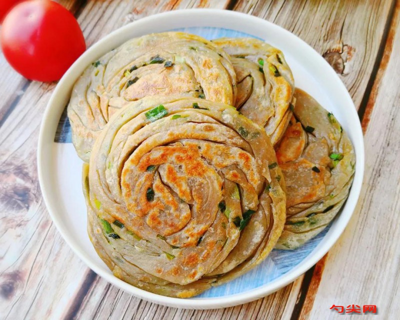 注意事項:搟制面片時,力度要均勻,避免搟破。卷制面片時,可以邊卷邊抻,使面片層次更加豐富。烙制時,電餅鐺或平底鍋要預熱均勻,溫度不要太高,以免烙焦。烙制過程中要時常翻面,確保餅受熱均勻。烙至兩面金黃且餅子膨脹飽滿即可出鍋,不要烙制時間過長,以免餅變硬。