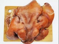 工藝:選用符合衛生檢驗要求的新鮮豬頭作加工原料,把豬頭徹底刮凈豬頭表面、臉溝、耳根等處的毛污和泥垢,拔凈余毛和毛根。將豬面部朝下放在砧板上,從后腦中間劈開,挖取豬腦,剔去頭骨,割下兩耳,去掉眼圈、鼻子;取出口條,用清水浸泡1小時,撈出,洗凈,瀝去水分。將富磷聯B加入浸泡腌制肉品的水中,腌制8小時。將洗凈的豬頭肉、口條、耳朵放入開水鍋中焯水15分鐘,撈出,瀝干,放入老鹵湯鍋內,加上其他調味料和香辛料,加水漫過豬頭,大火燒開文火煨2小左右,撈出,出鍋的豬頭,趁熱拆出骨頭,整形后即為成品。