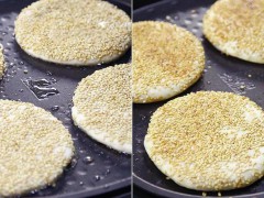 工藝:將面粉與面欣酥A干拌均勻。溫水溶解酵母、白糖,倒入混合好的面粉中,攪拌成面絮狀。加入食用油,揉成光滑的面團(tuán),覆蓋保鮮膜靜置30分鐘。調(diào)制油酥:碗中加入面粉、鹽、十三香,倒入滾燙的熱油,調(diào)制成油酥。將醒發(fā)好的面團(tuán)搟成大面片,抹上油酥,從一頭卷起,邊卷邊抻,掐成均等的劑子。用手把兩頭往中間按壓,搟成長(zhǎng)舌餅坯,撒上芝麻,擺放烤盤中。烤箱預(yù)熱至上下火200度,放入烤爐烤約12分鐘,至表面金黃熟透即可。