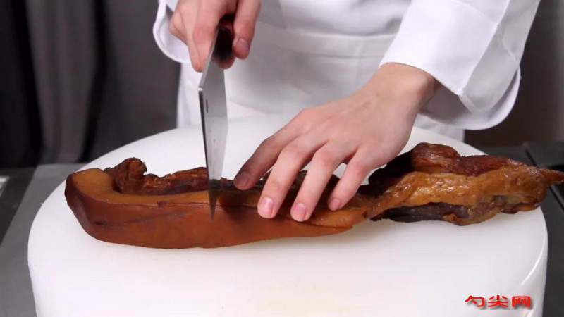 配方:帶皮五花肉2.5公斤、溫開水、鹽50克、白砂糖50克、生抽50克、富磷聯(lián)B20克、味達蕾903號2.5克、白酒少許。