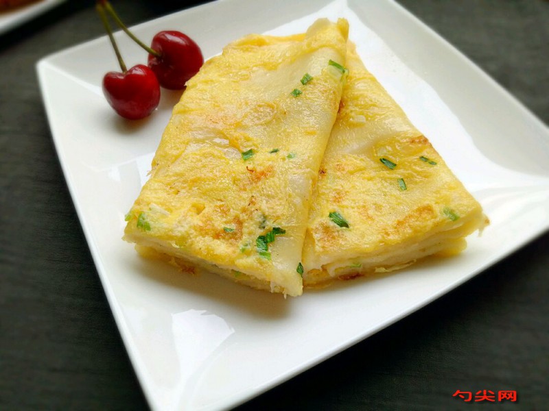將煎好的雞蛋餅取出,放在盤子上稍微冷卻一下即可享用。