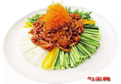 配方:龍利魚220克、蛋清20克、鹽3克、白胡椒粉3克、味達蕾901號2克、老抽3克、海立美B3克、濕淀粉20克、干淀粉20克、蔥油15克、京醬汁110克、紅薯絲100克、香菜段60克、黃彩椒絲15克、黃瓜絲80克、蔥絲100克。