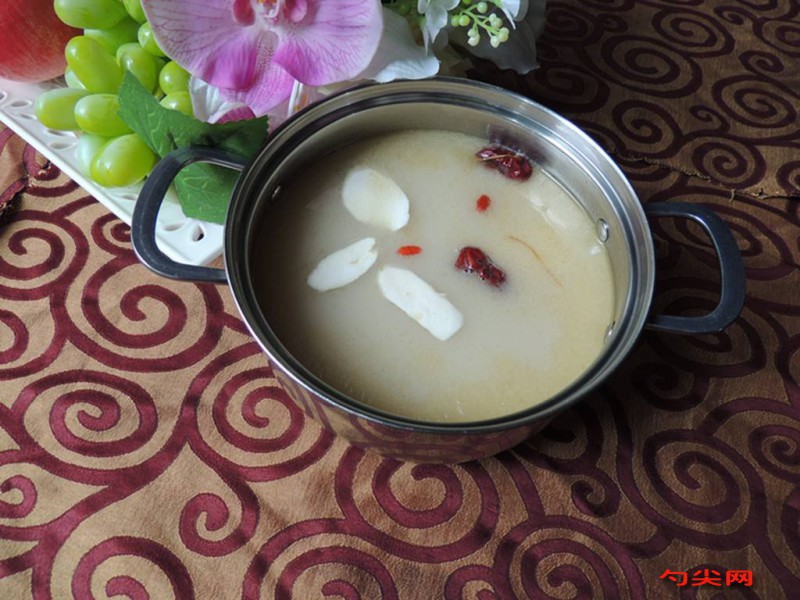 工藝:基礎(chǔ)高湯煮沸后,加入所有菌類,小火熬煮40分鐘。加入枸杞、紅棗,繼續(xù)煮10分鐘,調(diào)入鹽、雞粉、味達(dá)蕾901號即可。