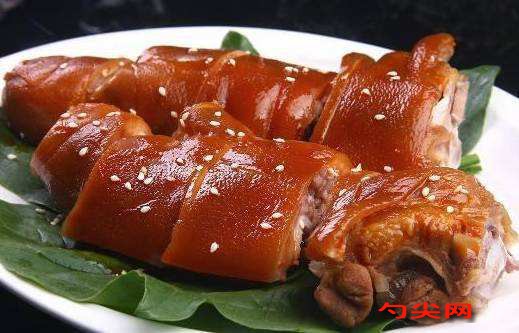工藝:將豬蹄處理干凈,去除殘毛,用火燎去余毛后洗凈。把豬蹄放入鍋中,加入適量的水,煮至豬蹄表皮收縮,撈出用清水沖洗干凈。