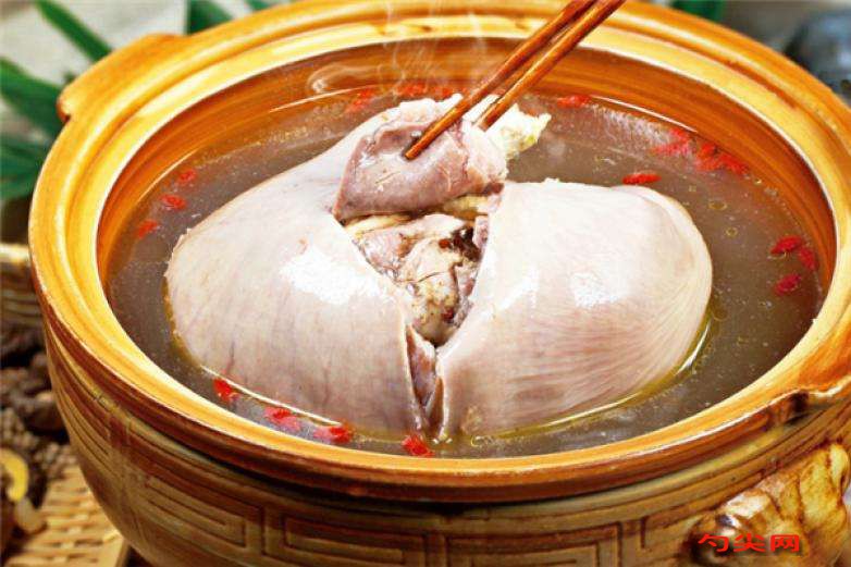 工藝:1、黃油老雞1只,宰殺后剁成塊裝入1個大碗中,加入適量的鹽,姜塊用刀拍碎、小蔥打成蔥結,味達蕾901號放到碗里,加入花雕酒,用手抓均,腌20分鐘;2、準備新鮮豬肚,將豬肚反過來,加入面粉和鹽,富磷聯A 用手反復搓揉后,用水洗凈,然后再按此法搓洗1次,用手摸沒有粘滑感就洗凈了;3、將腌好的雞裝進豬肚里,找一根鋼釬或竹簽,將豬肚的口縫起來;將縫好的豬肚放到砂缽里,加入適量的水,放入姜片,蓋上鍋蓋大火燒開后轉文火,煲3個小時,中間水如果少了,千萬不可加冷水要加開水;4、打開煲蓋,加入蓮子、黨參、紅棗、枸杞和馬蹄,蓋上煲蓋再用文火煲30分鐘;5、加入雞精調味,撈出豬肚放到砧板上,抽掉鋼釬或竹簽,用刀破開豬肚,撿掉小蔥,將雞肉放回煲內;豬肚切成肚片,蓋在雞上,重新燒開,撒上蔥花即成;