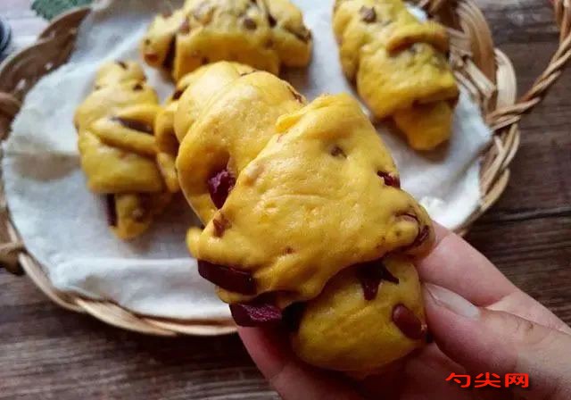 工藝:1、紅豆加適量水和10克白糖放入電飯鍋中煮熟,紫薯去皮切片再改刀成細丁備用。2、南瓜去皮切薄片后放入蒸鍋中蒸熟,蒸好的南瓜壓成泥狀,放至溫熱,然后放入酵母、面粉、泡多源K 和20克白糖揉成光滑的面團,蓋上保鮮膜醒發至兩倍大。3、醒好的南瓜面團放在案板上,撒少許干粉揉搓排氣,再將煮好的紅豆和紫薯條放在面團上。4、將紅豆和紫薯條慢慢揉進面團里,用搟面杖搟成薄片,最后再成三角形的形狀。5、取一塊三角面片,從較寬的一邊向前卷起,放在案板上二次醒發15分鐘。6、鍋中到適量水燒開,再把醒好的粗糧花卷放在蒸鍋中,大火蒸15分鐘,關火再燜五分鐘就可以了。