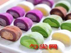工藝:1、先來做卡仕達醬,蛋黃加入白糖攪勻,加入過篩的面粉攪勻,最后是這種流動性的蛋黃糊,奶鍋里加入純牛奶、白糖,開小火慢慢煮開。然后倒在蛋黃糊里,一邊倒一邊攪拌,再重新倒回到鍋里,最小火慢慢熬煮,一邊煮一邊不停地攪拌,直到變成這種濃稠的糊糊。糯米粿的餡料要稍微熬煮的濃稠一些。還可以做成其他口味的:斑斕口味的、紫薯口味的、巧克力口味的,最后可以加黃油也可以不加,口感不會有太大的差別。裝在碗中,保鮮膜貼面保存,常溫放涼,然后用打蛋器攪打幾圈,就細膩了。裝在裱花袋里,冷藏備用; 2、再來糯米皮,先把糯米粉與 泡多源K 干拌均勻,糯米粉分次少量地加入清水,拌成小顆粒的狀態,可以手搓,也可以用料理機攪打細膩,最后是這種玉米渣的狀態; 3、紗布提前打濕鋪在籠屜上,搓好的面粉均勻撒上去,蓋上紗布,開水上鍋蒸30分鐘左右。取出來倒在大碗中,容器提前刷油,最好在硅膠墊上操作防粘,稍微放涼之后,手套抹上黃油,開始揉搓,稍微變光滑之后再加入白糖繼續搓均勻,再加入清水,用抓捏的手法,直到面團把水分完全吃進去,最后加入黃油揉均勻,像這樣非常光滑拉絲的狀態就可以了; 4、均勻分成4等份,分別加入斑斕粉、紫薯粉、可可粉,我們得到了4種顏色的面團,保鮮膜密封冷藏2-3個小時; 5、面團取出來分成大約50克小劑子,稍微抻薄一點,擠上對應的餡料包起來。6、表面撒點干粉,放在油紙拖里,4種口味的糯米粿就做好了。