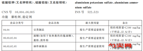 例如,水分含量為18%的某面包,使用硫酸鋁鉀(AlK(SO4)2·12H2O)為膨松劑,最大使用量m: