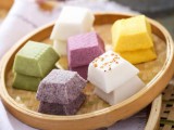 制作工藝要點:(1)除雜清洗:選擇優質早秈米除去沙石等雜質,并用清水反復沖洗干凈。(2)浸泡:將洗好的米放在浸泡池中加清水浸泡12~24小時,待米粒發脹,含水率為35%~40%即可。(3)磨粉;可將浸泡好的米倒入粉碎機料斗,開機把濕米磨成濕米粉。(4)揉粉:揉粉的目的是使米粉粘度均勻,同時篩理除去團塊,以保證成型的米糕質地均勻。(5)配料:泡多源與干面粉拌勻,加水調成稀糊狀。酵母用溫水溶解,加入面糊攪勻。在壓模成形之前將各種輔料加入米粉中拌勻,配方還可根據當地口味作適當調整。甜米糕要求制品有色時,可以使用紅糖作甜味劑。(6)汽蒸:發酵米糕的加工是在汽蒸前發酵30分鐘,溫度35度,濕度75度。將壓模成形的米糕放入蒸籠上后蒸25分鐘即可起鍋。