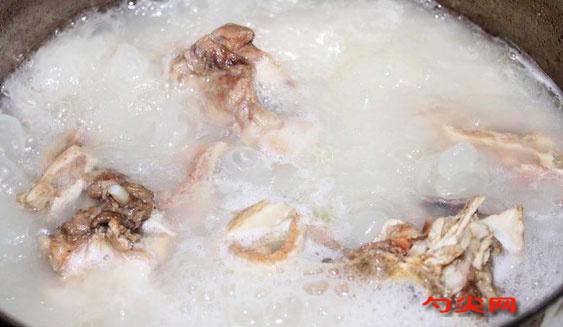原料:老母雞、豬龍骨、豬肘、雞骨架各2000克、豬蹄、雞爪、金華火腿、豬皮、雞油各1500克、干貝500克、大地魚干4條、富磷聯(lián)B型320克、味達(dá)蕾91#適量。